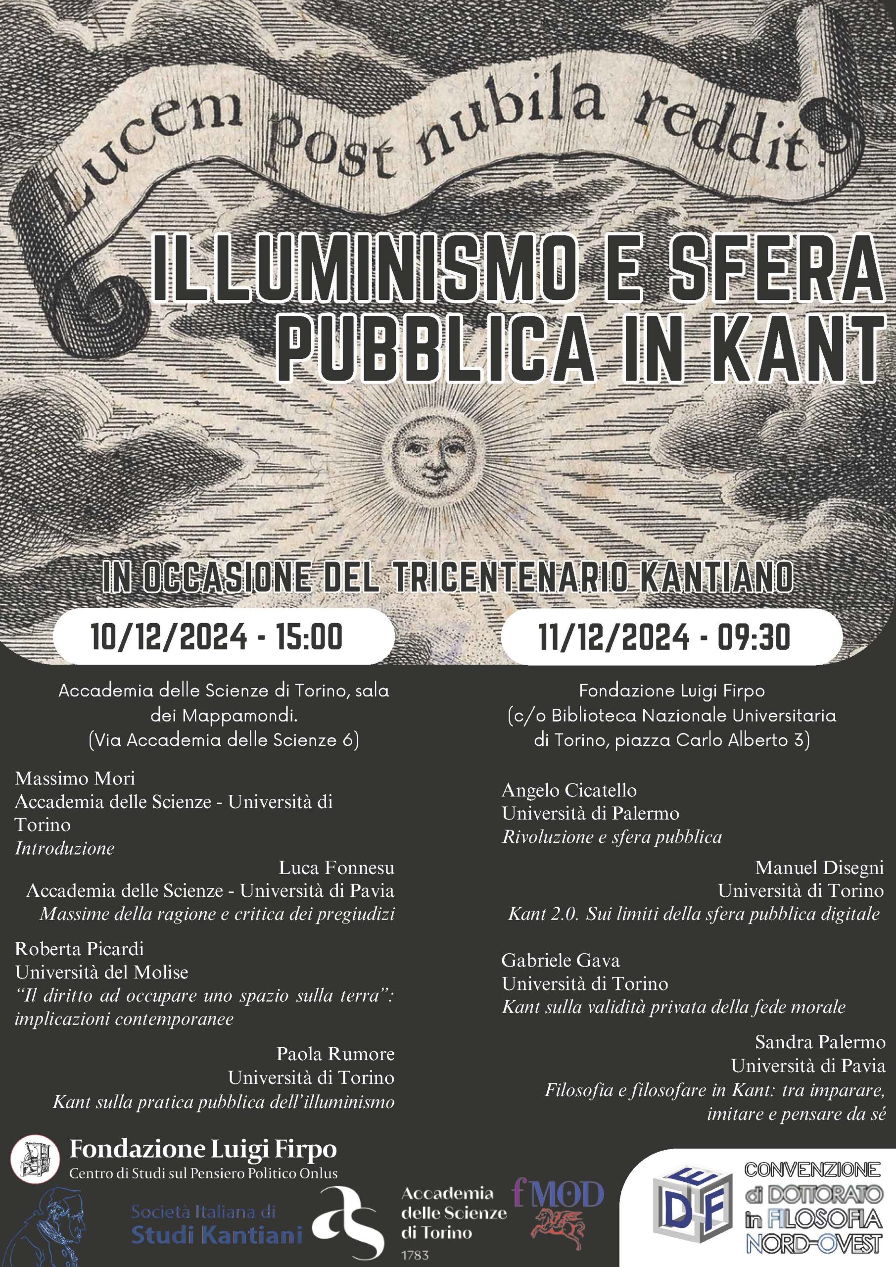 Nel 2024 si celebra il trecentesimo anniversario della nascita di Immanuel Kant. Questo convegno si allaccia alla ricorrenza riflettendo sul contributo di Kant alla promozione dell’ideale illuministico di una sfera pubblica come terreno comune di confronto tra individui, basato su argomentazioni razionali.